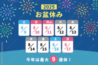 お盆休み期間:令和7年8月9日(土)~令和7年8月17日(日)