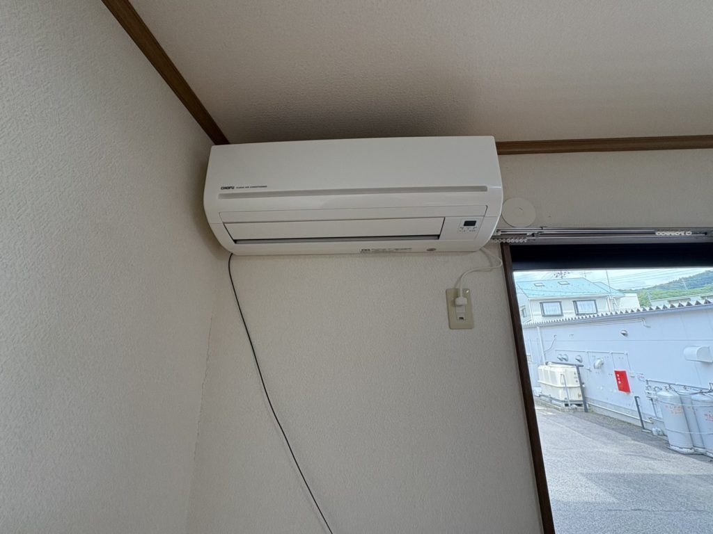 バストイレ別、エアコン、ガスコンロ対応、クロゼット、シャワー付洗面台、TVインターホン、室内洗濯置、陽当り良好、角住戸、温水洗浄便座、駐車場1台無料、バス停徒歩2分以内、プロパンガス、敷金・礼金不要